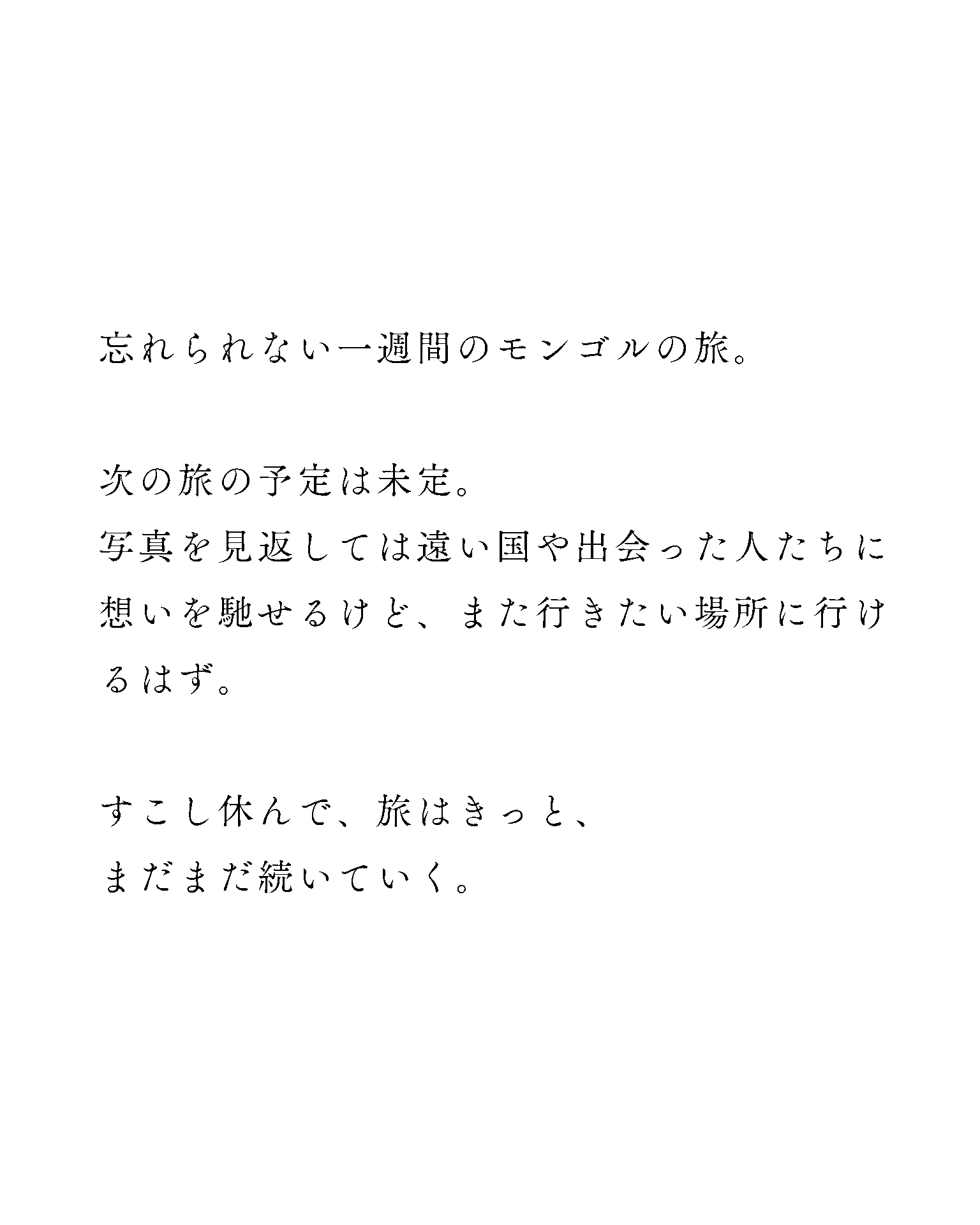 そんな旅も、ここでいったんひと休み。休息前の旅の舞台となったのは、モンゴル。