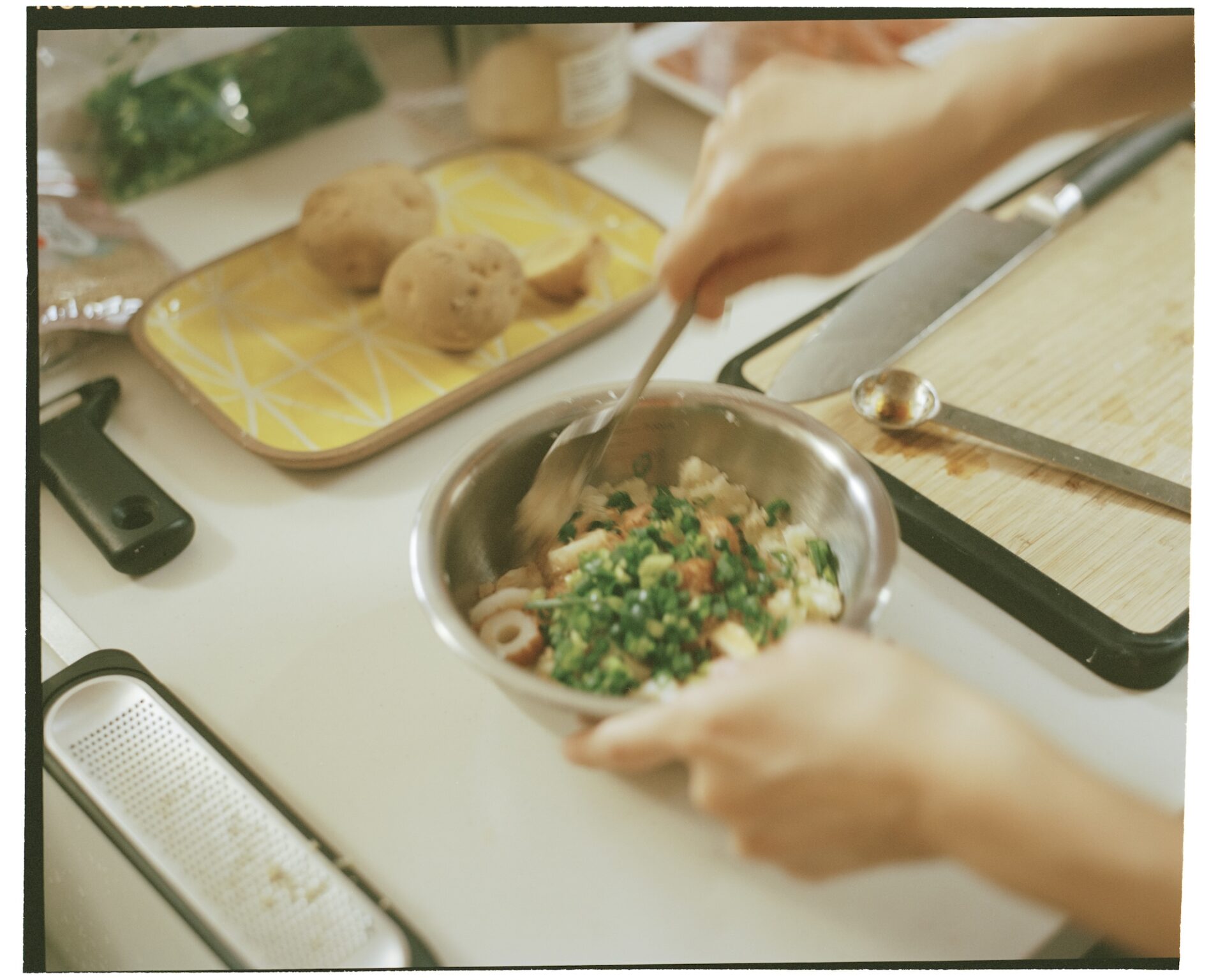 服部さんが中判カメラで切り取るフィルム写真から、気ままに料理を楽しむ二人の空気感をお楽しみください。