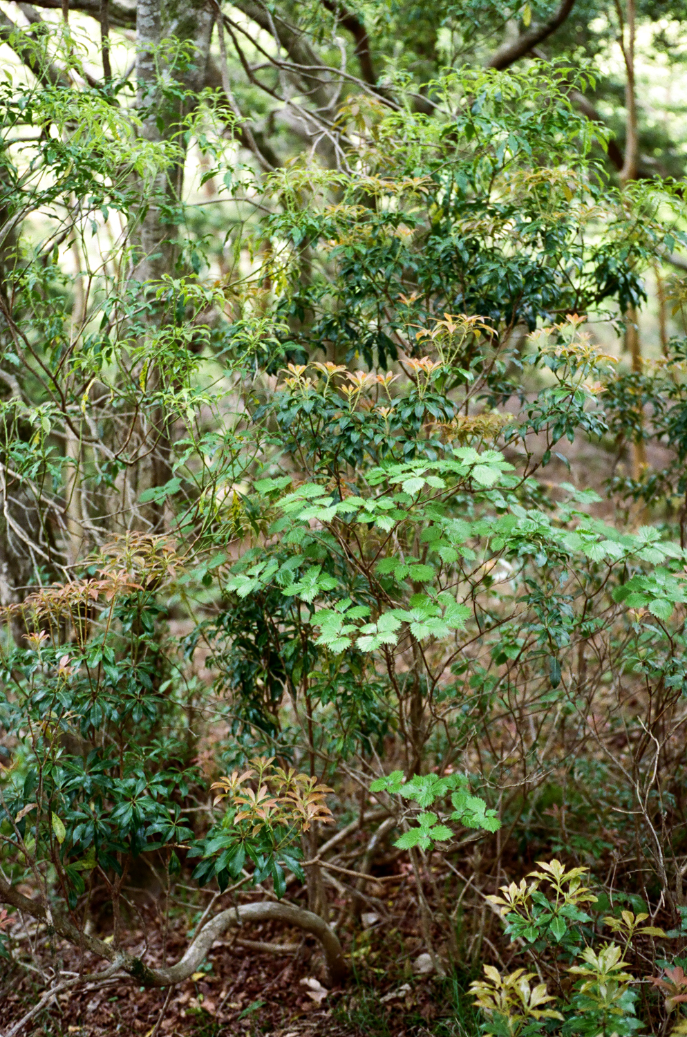登山道を歩いていると、つい頂上ばかりを目指してしまう。ふと足を止めて周りを見渡すと、そこには無数の気配が広がっている。まっすぐ空へ伸びる木。うねりながら絡み合う幹。山は、ただ登る場所ではなく、観察することで豊かさが立ち上がる場所でもある。